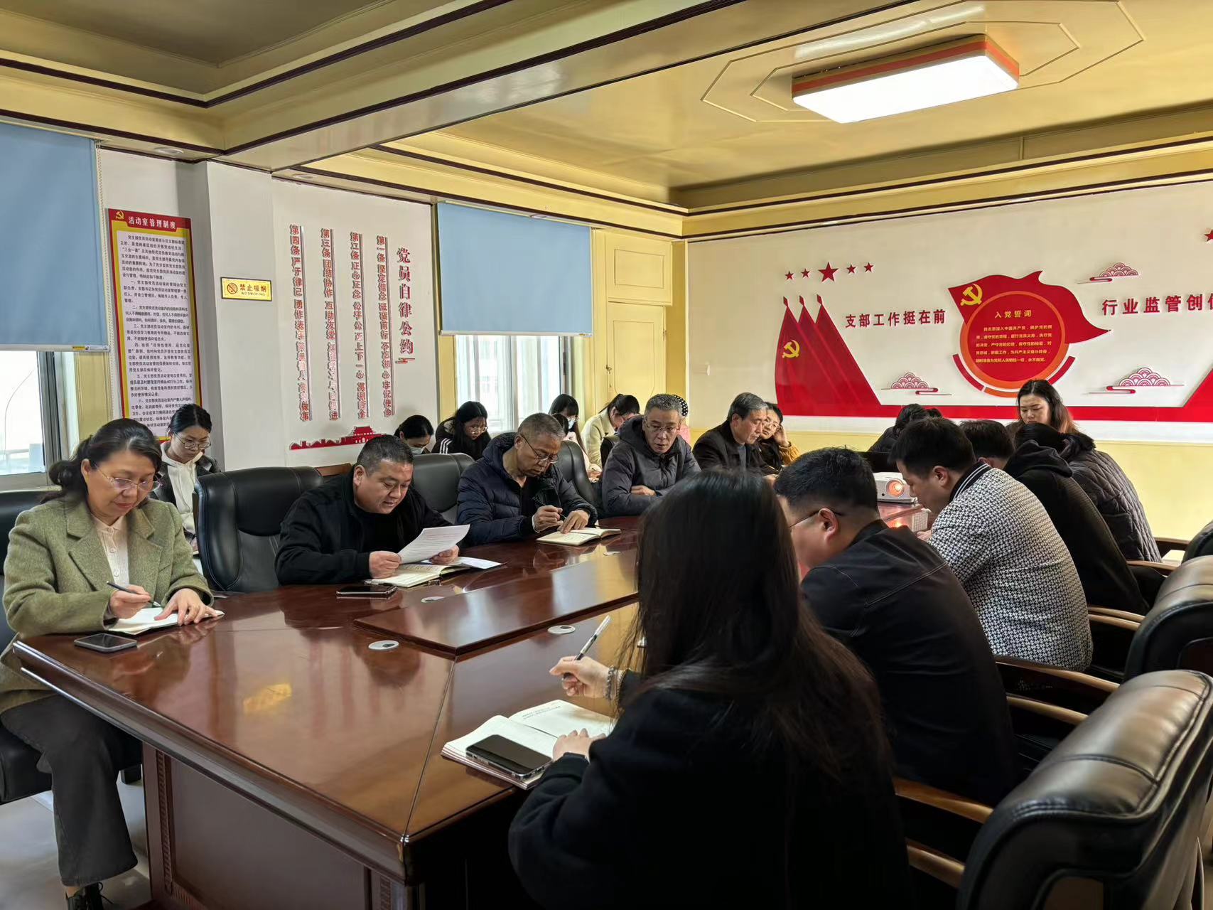 3月26日,周口市市场监督管理局专业分局在分局503会议室组织召开党委理论中心组学习(扩大)会,深入学习习近平总书记关于党的自我革命的重要思想,学习贯彻二十届中央纪委三次全会精神。会议由党委委员王军主持,分局全体人员参加。