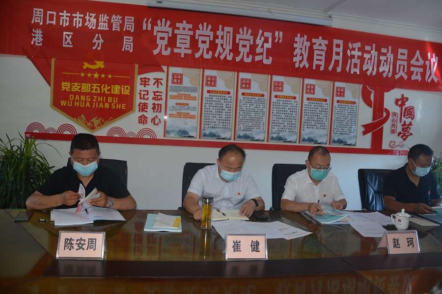 会上,党委委员(兼纪委委员)、副局长付振平分别传达了《中共周口市市场监督管理局机关纪律检查委员会关于开展党章党规党纪教育月活动的通知》(周市监纪发[2022]2号)、《中共周口市市场监督管理局港口物流产业集聚区分局委员会关于开展党章党规党纪教育月活动的通知》(周市监港党[2022]8号),并对学习活动做出具体安排。