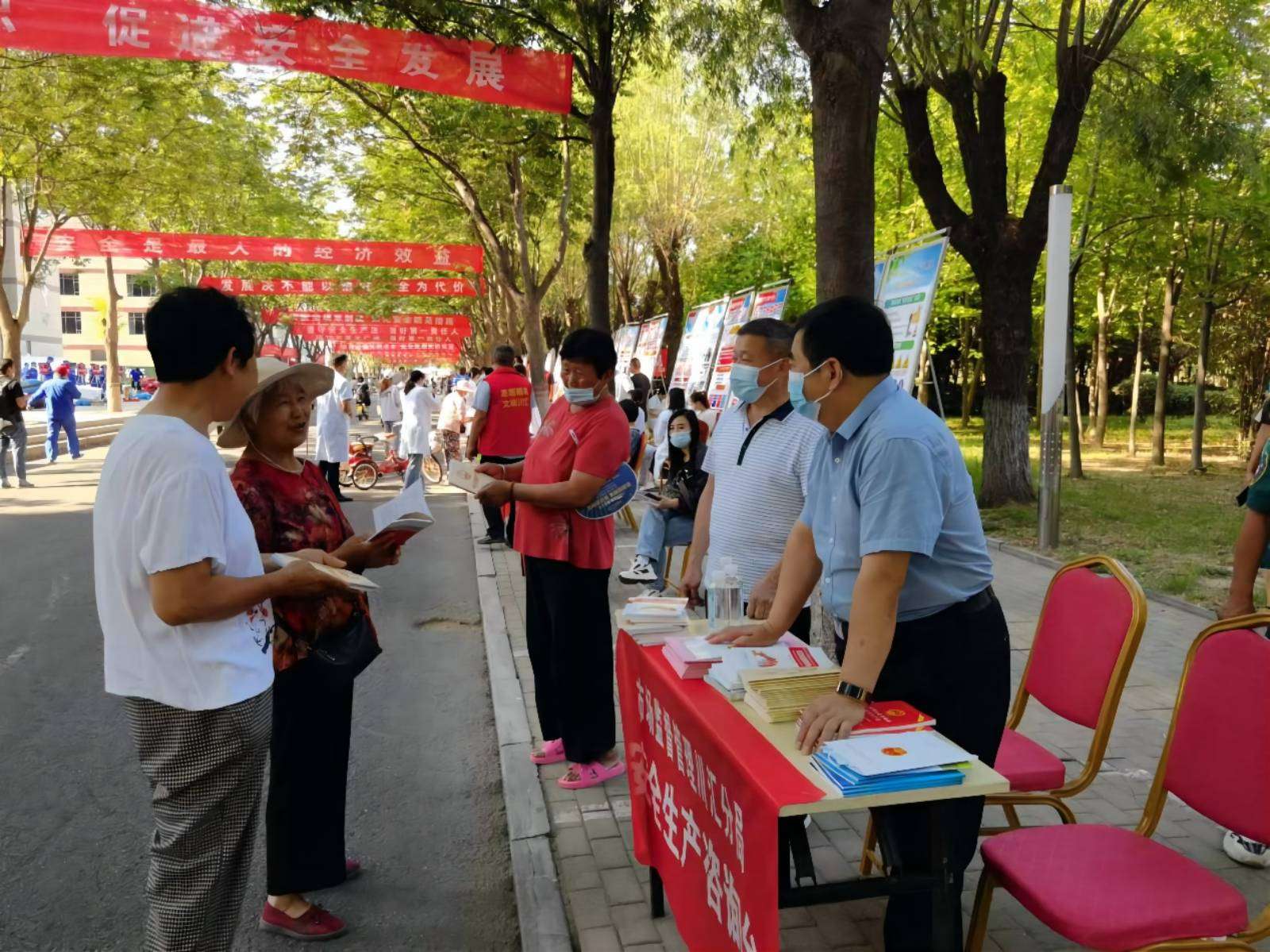 市场监管局川汇分局党委委员(一级主办)展和平带领分局特设股全体工作人员参加了活动。此次活动我局共制作宣传展板2块、宣传横幅20幅、宣传手册及彩页800份,接受群众咨询60余人次。活动现场,我局工作人员通过发放宣传资料、摆放宣传展板、设置咨询台、悬挂宣传横幅、耐心讲解等形式,向广大群众宣传新安全法、安全生产十五条硬措施以及防灾减灾、消防安全、特种设备安全使用等安全科普知识,讲解日常安全注意事项,细心解答公众关心的安全生产问题。
