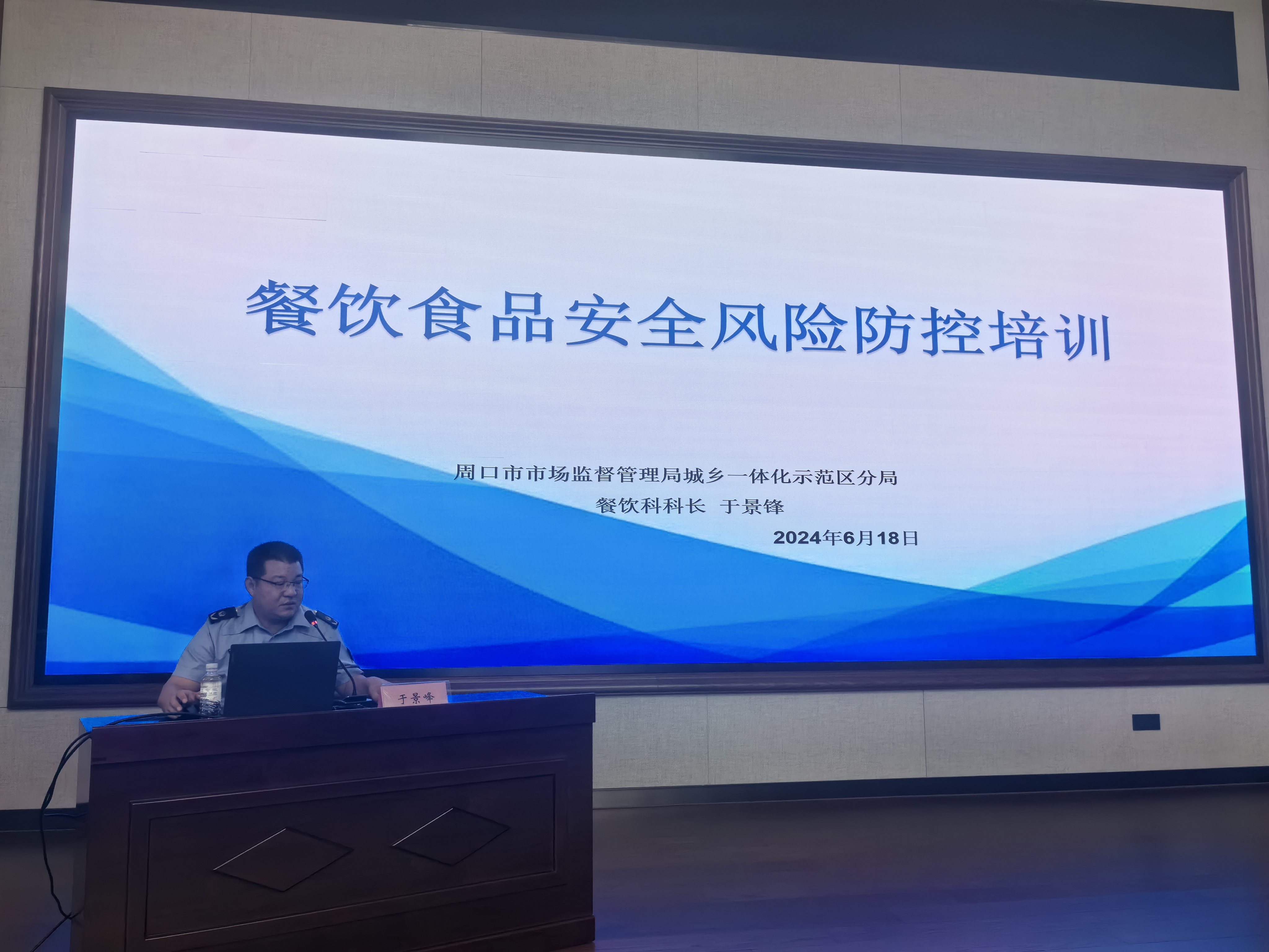 为进一步提高餐饮从业人员的食品安全意识,防范化解食品安全风险,2024年6月18日下午,周口市市场监督管理局示范区分局受邀到周口市迎宾馆开展食品安全培训工作。示范区分局党委副书记陈伟、餐饮科科长于景锋分别就市场主体尽责维权及餐饮食品安全风险防控等方面进行讲解。迎宾馆120余名餐饮从业人员参加培训。
