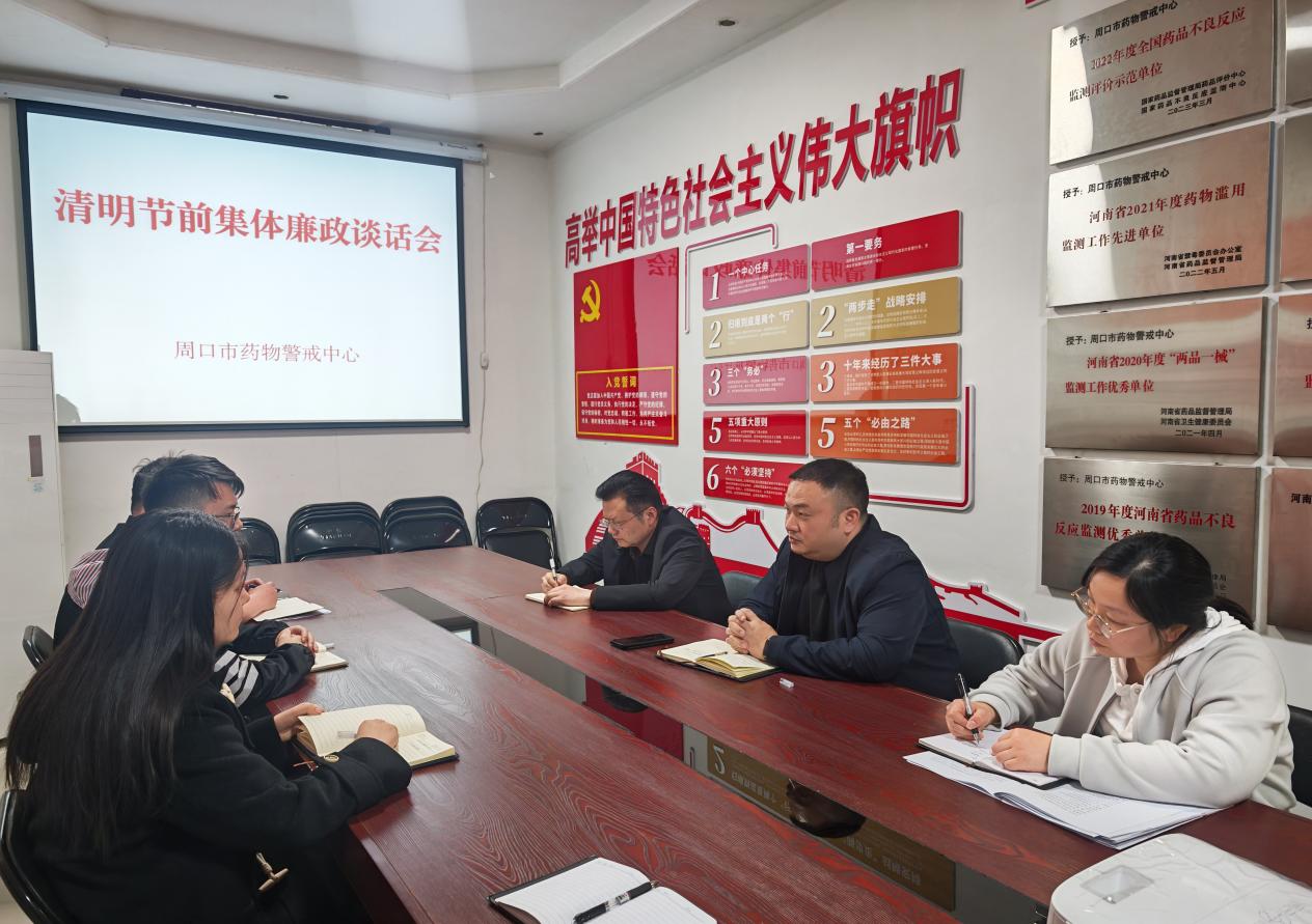 图1 4月3日,市药物警戒中心召开清明节前集体廉政提醒谈话会。
