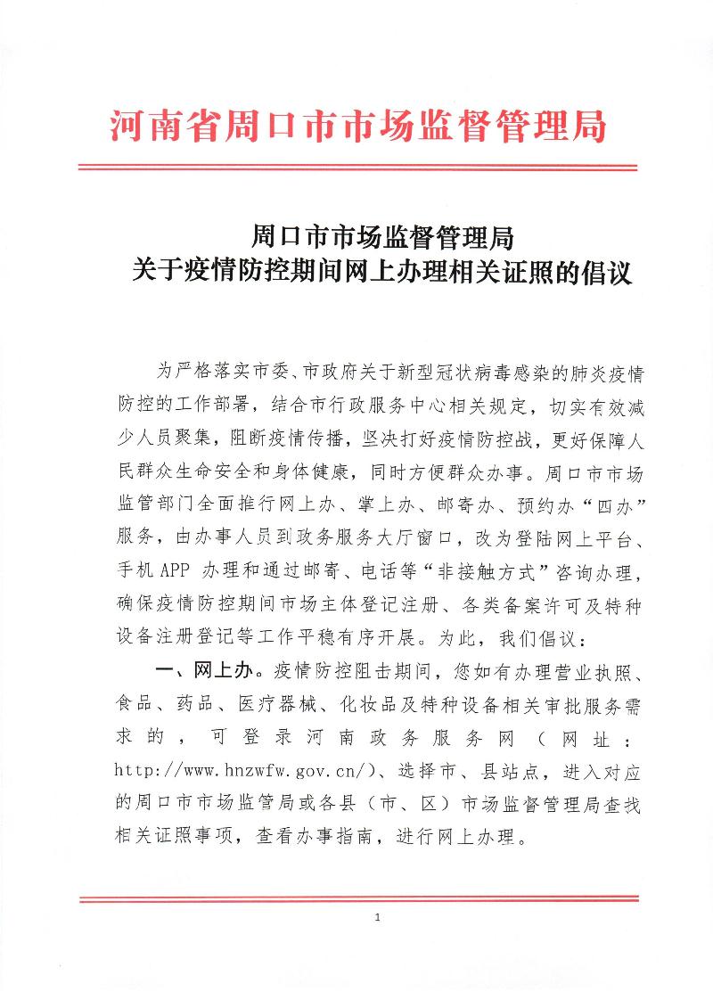 关于疫情防控期间网上办理相关证照的倡议
